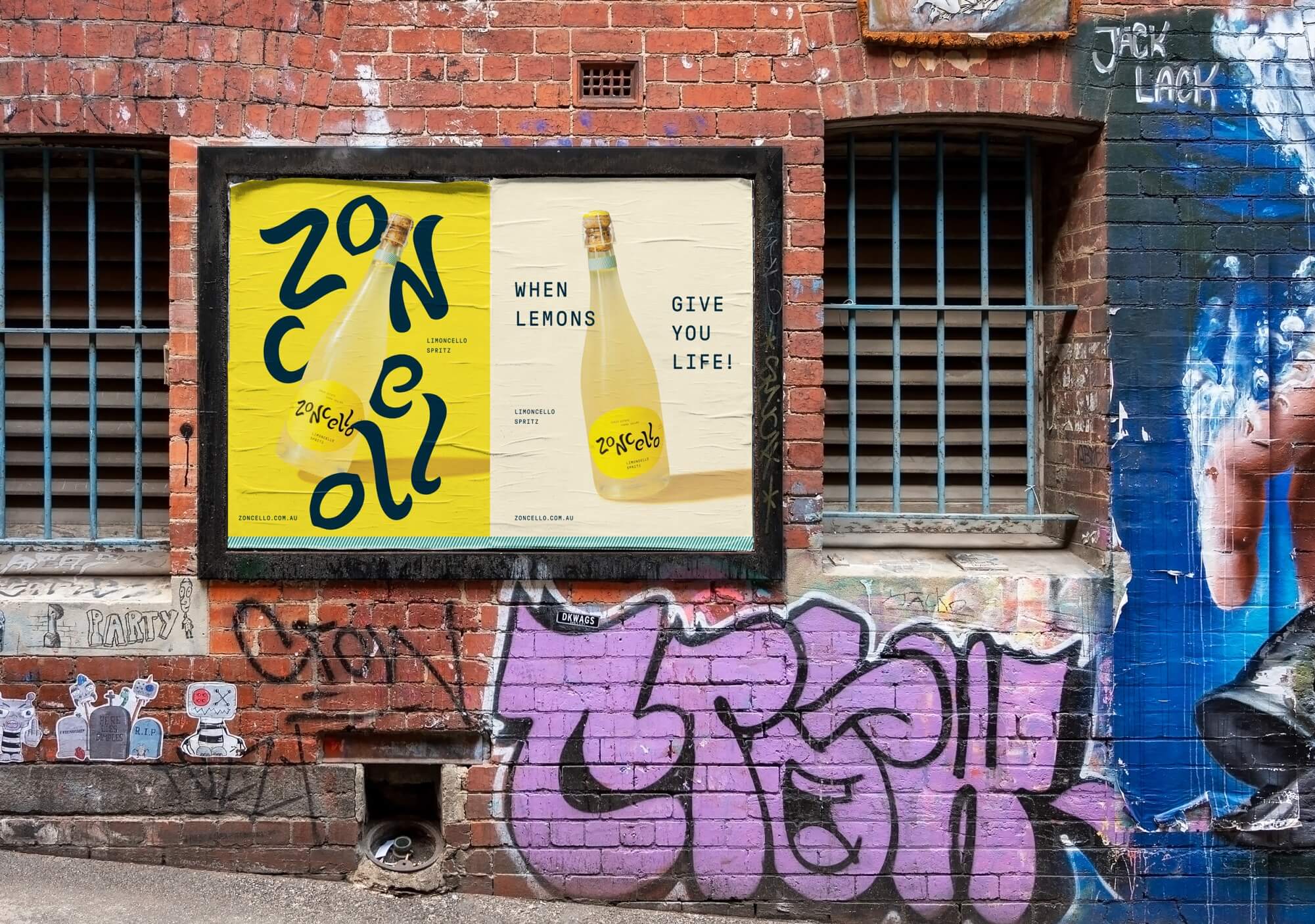 Zoncello Limoncello Spritz is a world first, pre-made Limoncello Spritz crafted with fresh lemons, grape spirit, rainwater, and Australian sugar. Targeting men and women aged 24-45 who are social, trend-aware, and enjoy sharing new experiences, this product promises a zesty, refreshing taste that evokes the spirit of a European summer. The design will be minimalistic, chic, bold, and colourful. Key messages include its unique formulation, ready-to-drink convenience, and premium quality, aiming to make it a staple in bars, restaurants and social gatherings.