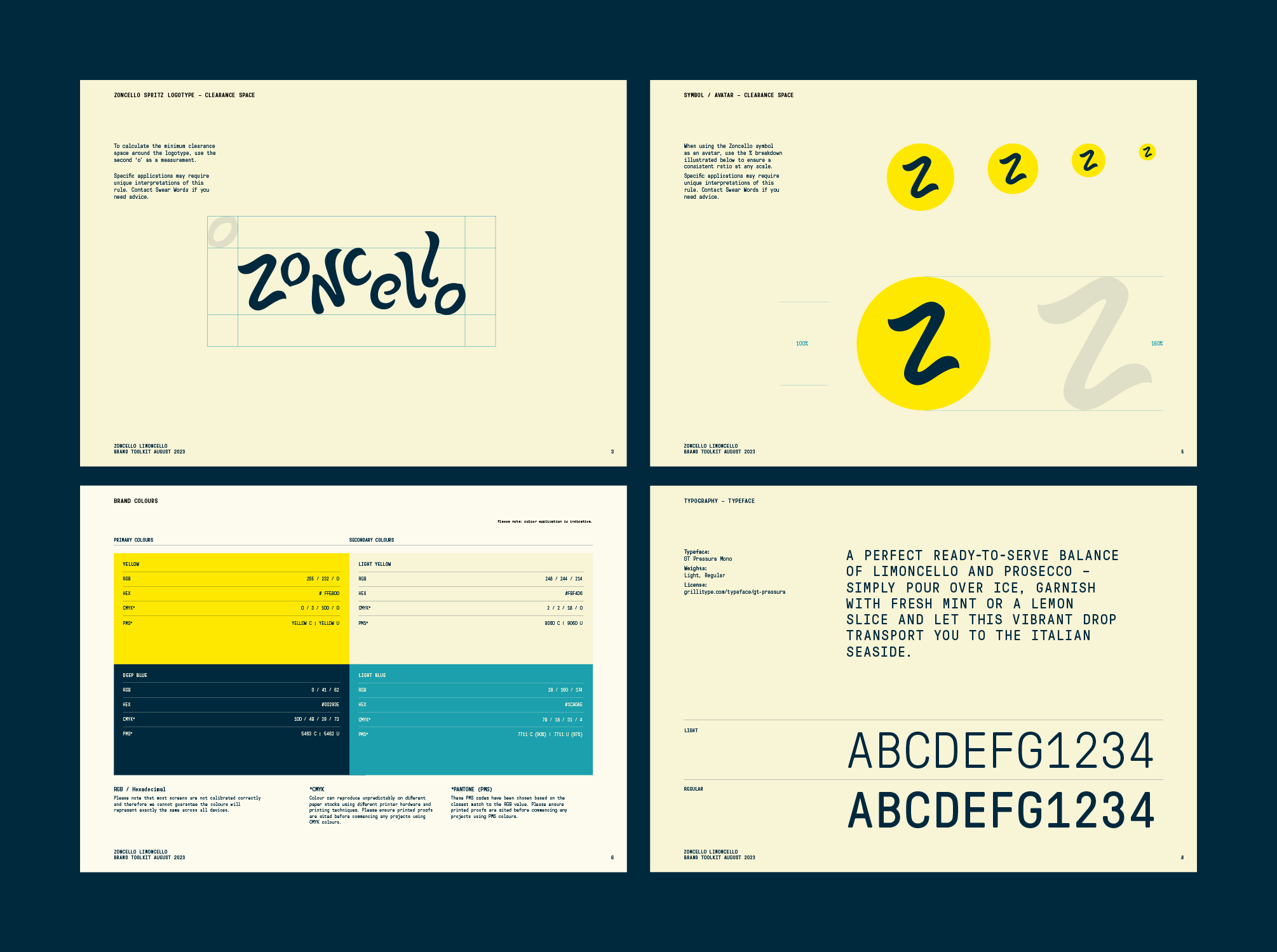 The design for Zoncello Limoncello Spritz creates a uniquely identifiable, iconic product embodying the essence of a European summer. The visual identity combines playful elements with elegant minimalism to ensure Zoncello stands out as the world’s first pre-made Limoncello Spritz. The playful logotype with lemon-peel-shaped letterforms balances minimal vibrant colour blocking to capture the brand’s energetic and carefree nature. Inspired by the Amalfi coast, bright yellow compliments sun-tarnished blues and a striped graphic that evokes nostalgia and warm familiarity. The subtle gloss screen hints at an effervescent nature, amplifying the energy of the design.